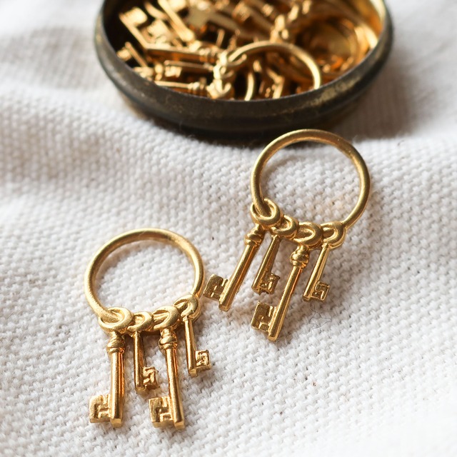 ハンドメイド アクセサリーパーツ 2個 A491 ゴールド カギ アンティーク調 鍵 鍵束 個性的 アメリカ製真鍮パーツショップ bomul ボムル