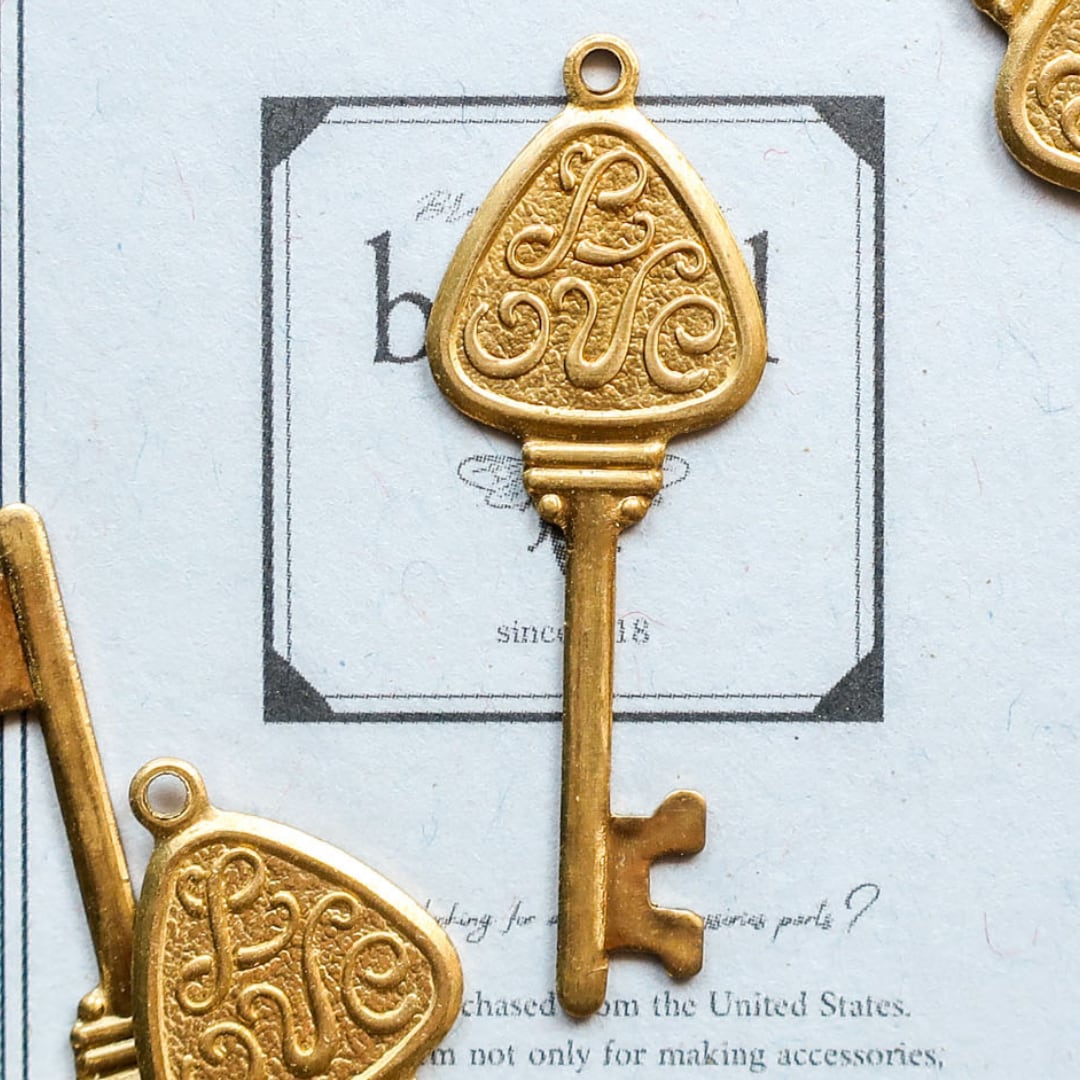 真鍮 パーツ 鍵 チャーム 2個 A2804 | カギ アクセサリーパーツ ゴールド アンティーク調 クラシカル アメリカ製 bomul ボムル