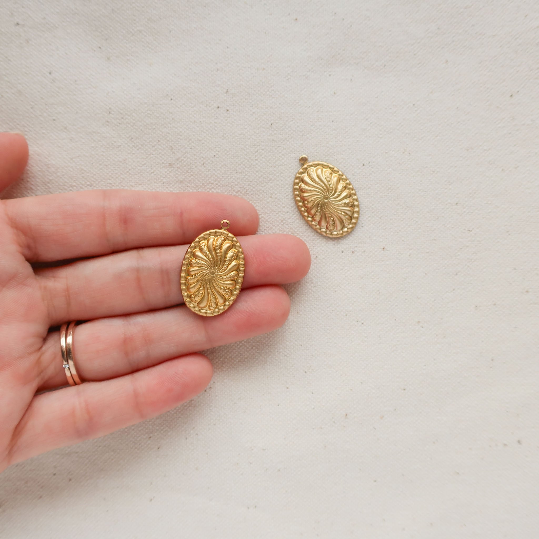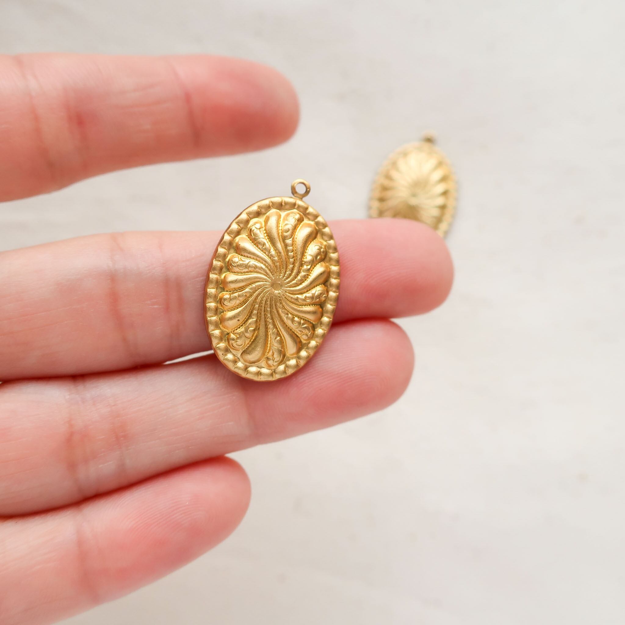 ハンドメイド アクセサリーパーツ チャーム 4個 A2854 ゴールド アンティーク調 オーバル 楕円 高級感 クラシカル アメリカ製真鍮パーツショップ bomul ボムル