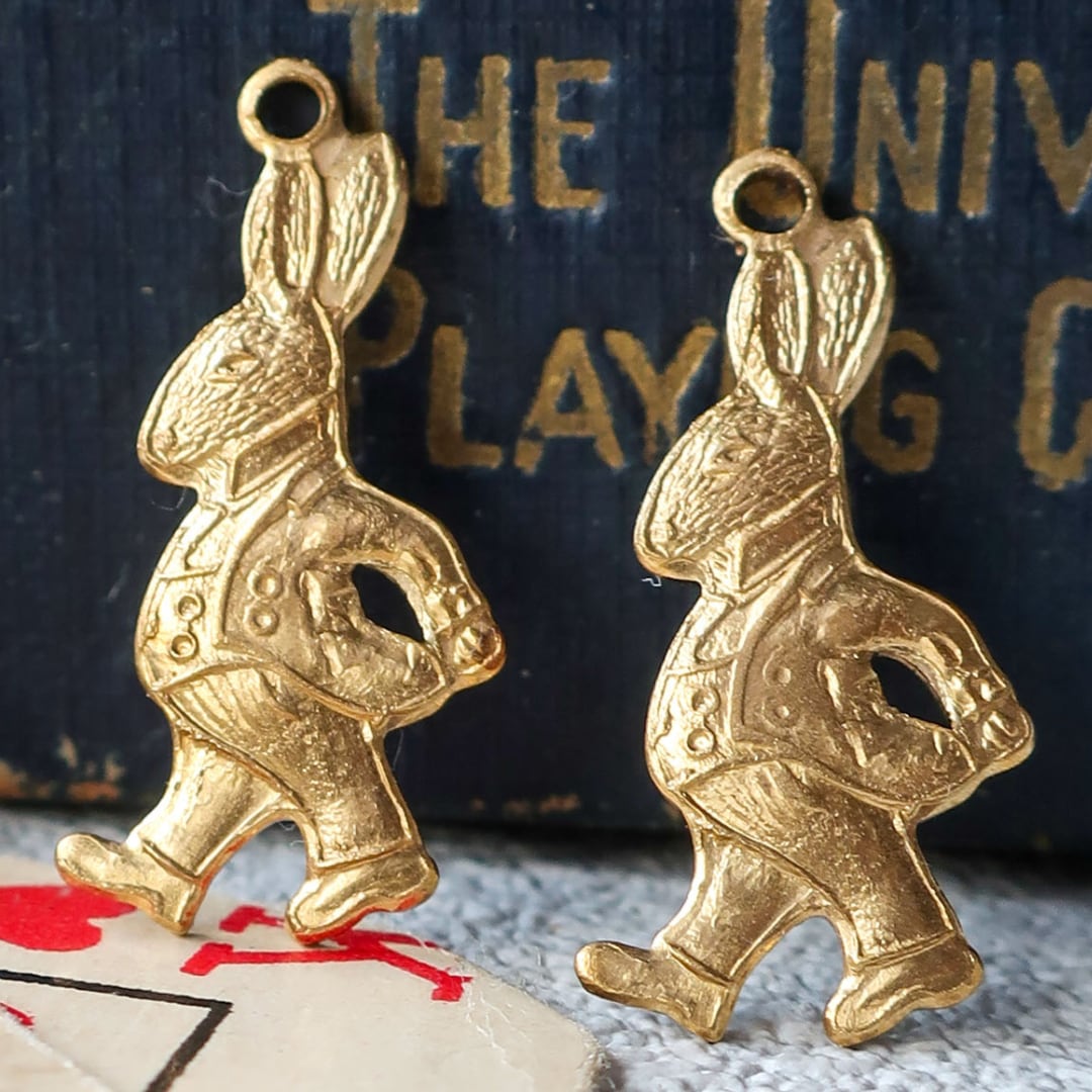 真鍮 パーツ うさぎ チャーム 2個 A2942 | 動物 アクセサリーパーツ ゴールド アンティーク調 アメリカ製 bomul ボムル