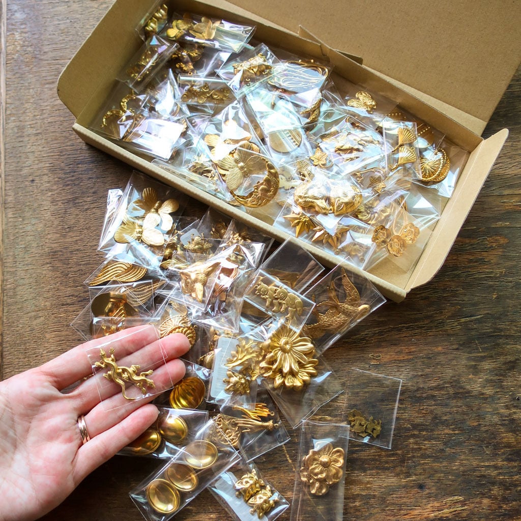 10%OFFクーポン付き SALE BOX【L】75袋入り アメリカ製真鍮アクセサリーパーツ 動物 チャーム 花 C3