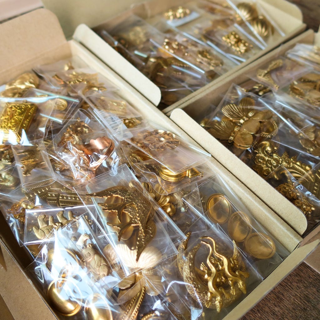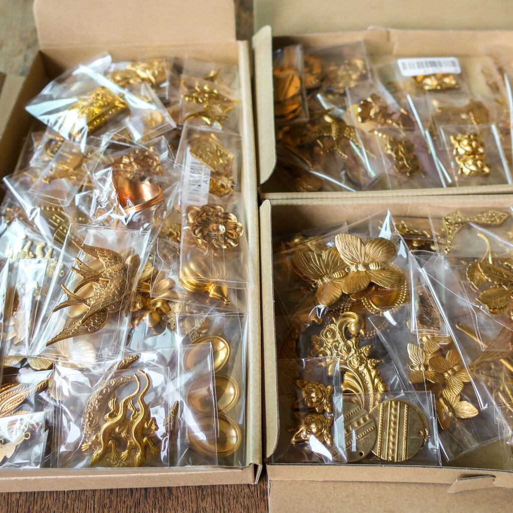 5%OFFクーポン付き SALE BOX【S】22袋入り アメリカ製真鍮アクセサリーパーツ 動物 チャーム 花 C5