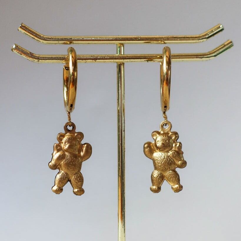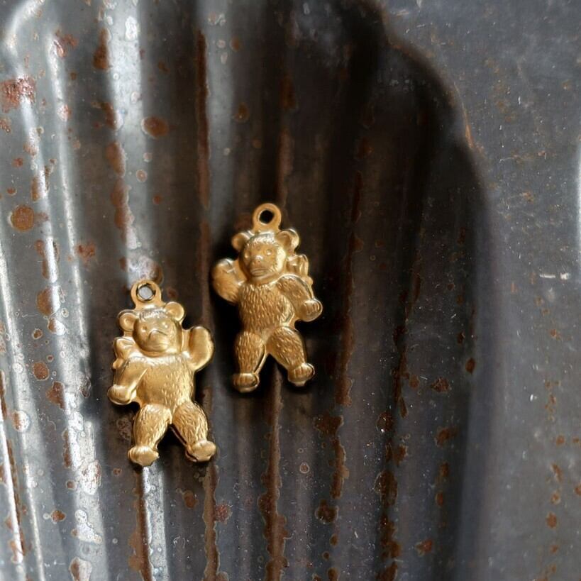 【NEW】USA無垢真鍮|テディベア チャーム (2個) A3134 |くま アクセサリーパーツ