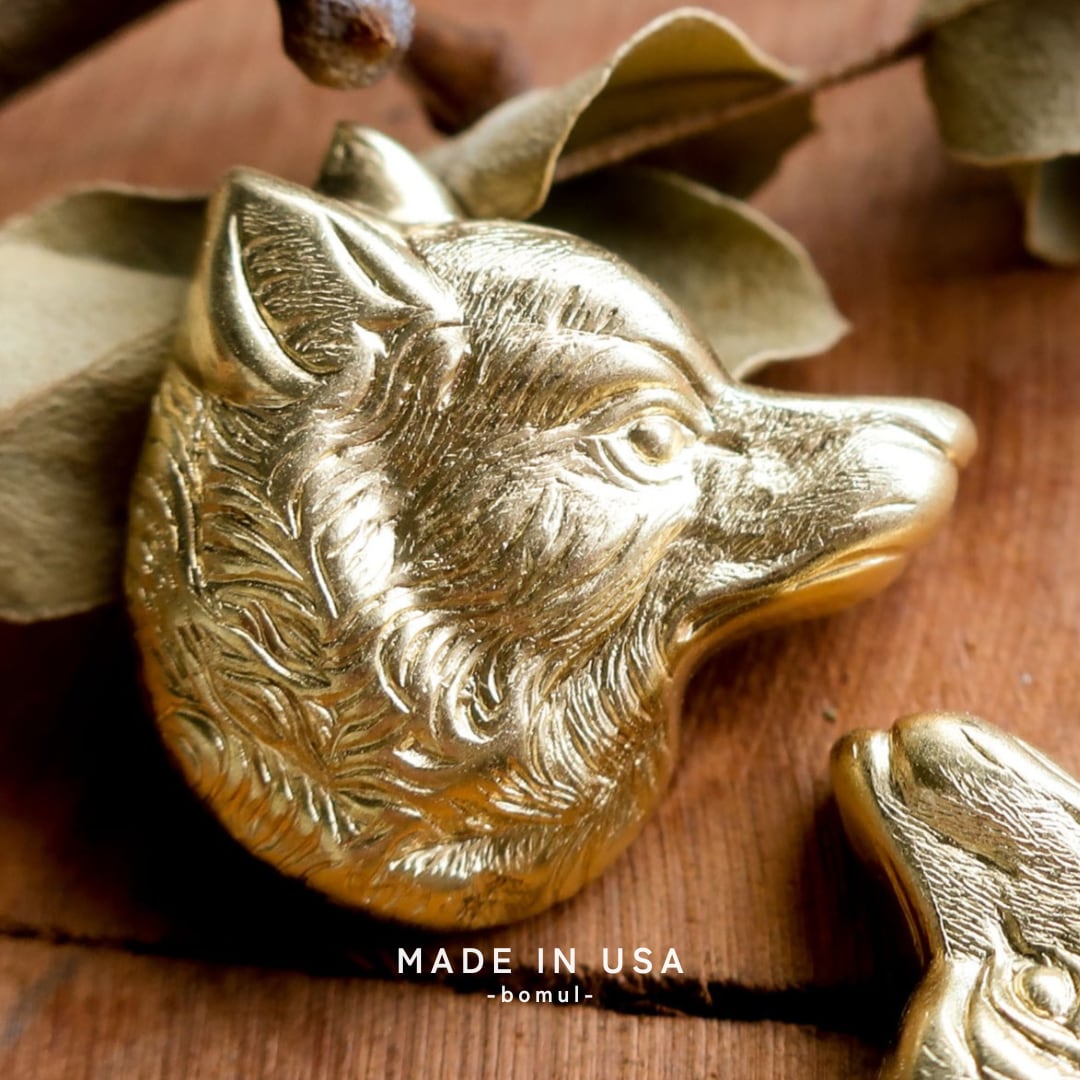 真鍮 パーツ 狼 動物 2個 A501 | おおかみ アニマル ハンドメイド アクセサリーパーツ ゴールド アンティーク調 クラシカル アメリカ製 bomul ボムル