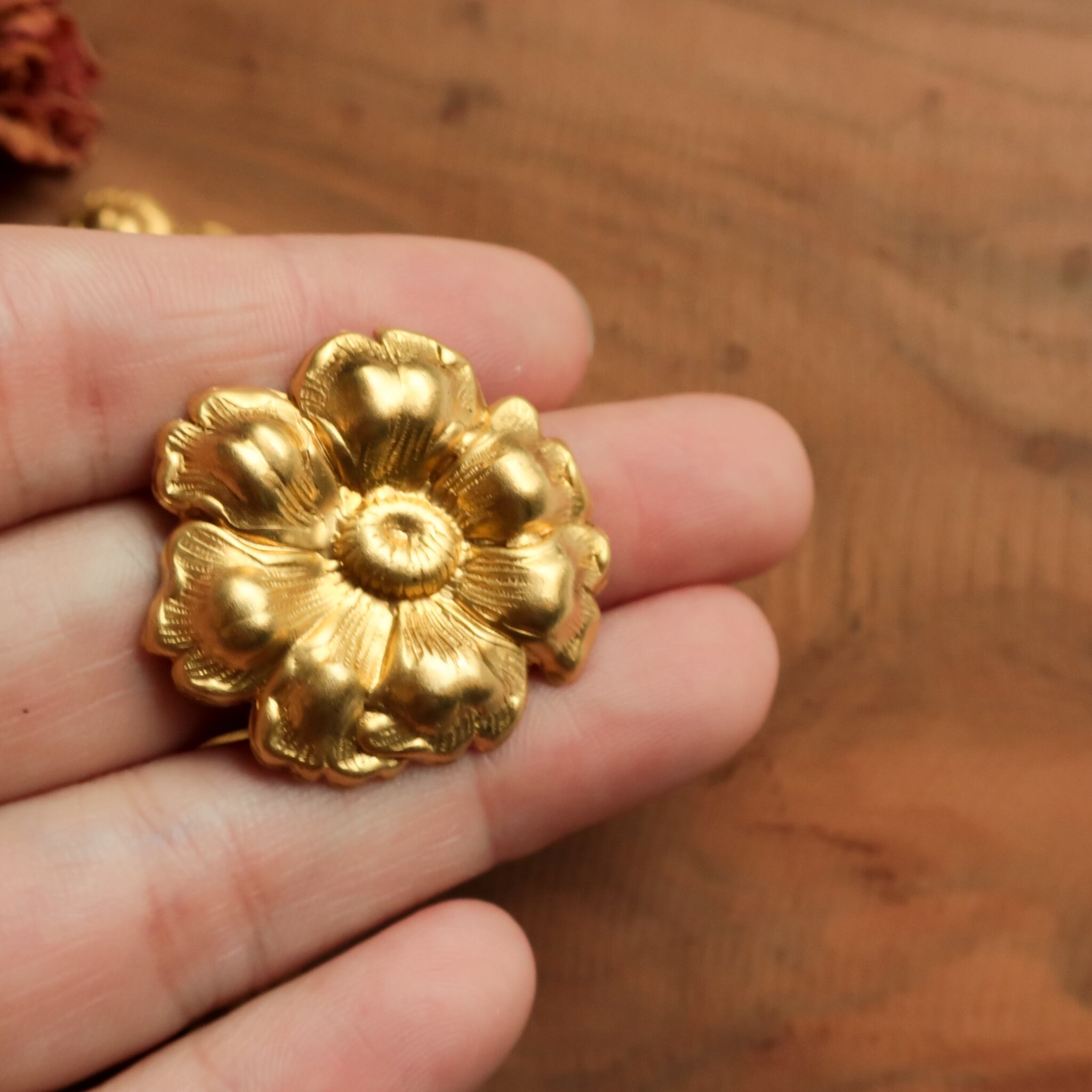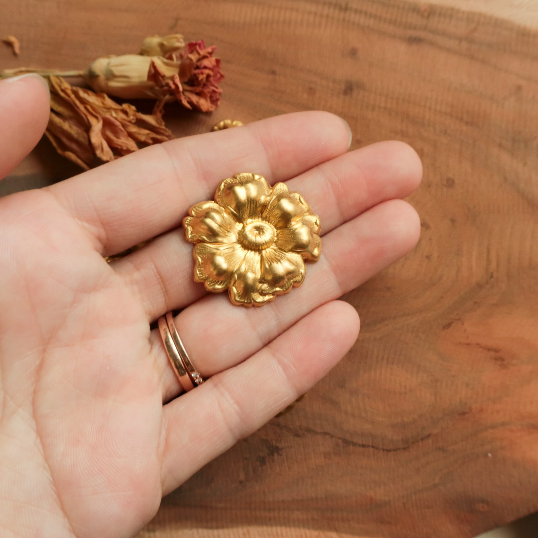 ハンドメイド アクセサリーパーツ 2個 A081 花 フラワー アンティーク調 アメリカ製真鍮パーツショップ bomul ボムル