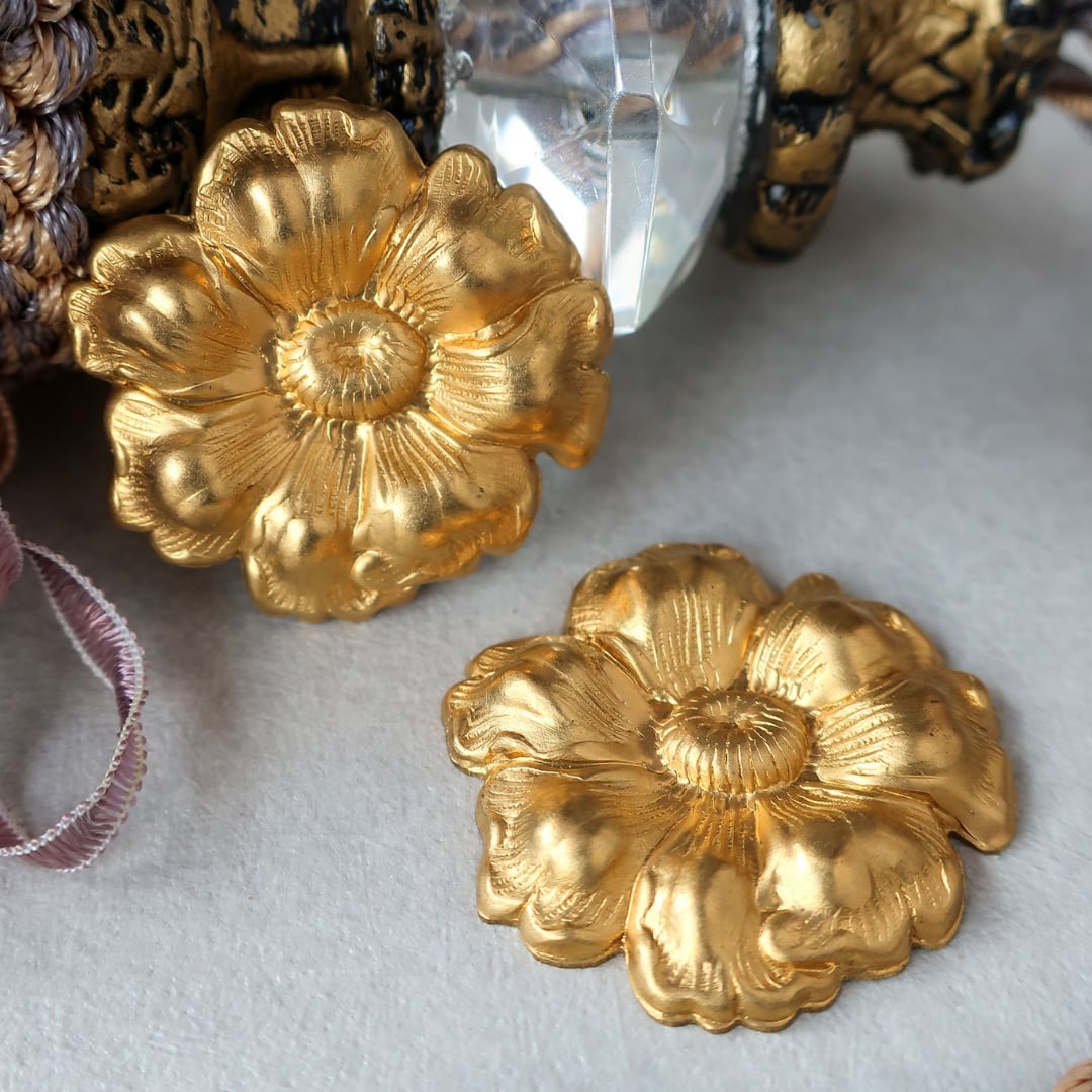真鍮 パーツ 花 2個 A081 | フラワー アクセサリーパーツ アンティーク調 アメリカ製 bomul ボムル