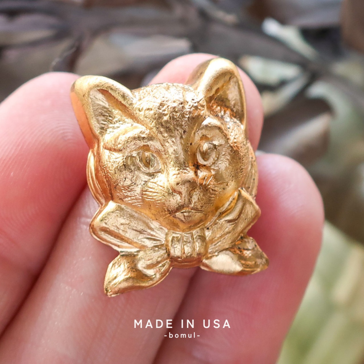 真鍮 パーツ 猫 1個 A1733 |キャット 動物 アクセサリーパーツ アンティーク調 アメリカ製 bomul ボムル