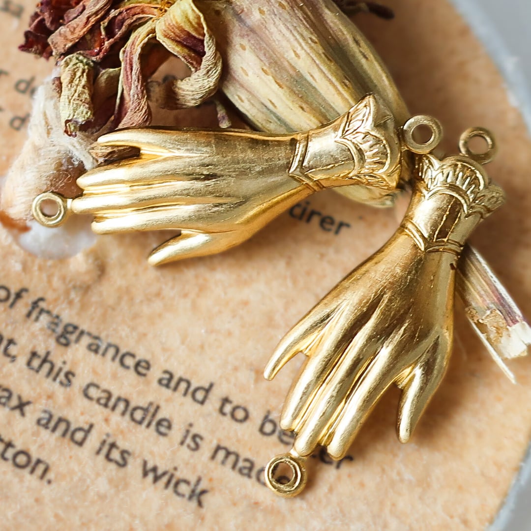 【人気】USA無垢真鍮| 手 コネクター (2個) A1304 | ハンド アクセサリーパーツ