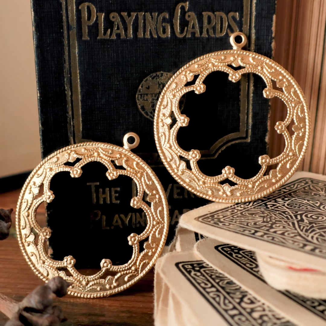 真鍮 パーツ サークル チャーム 2個 A1533 | アクセサリパーツ ゴールド アンティーク調 クラシカル アメリカ製 bomul ボムル