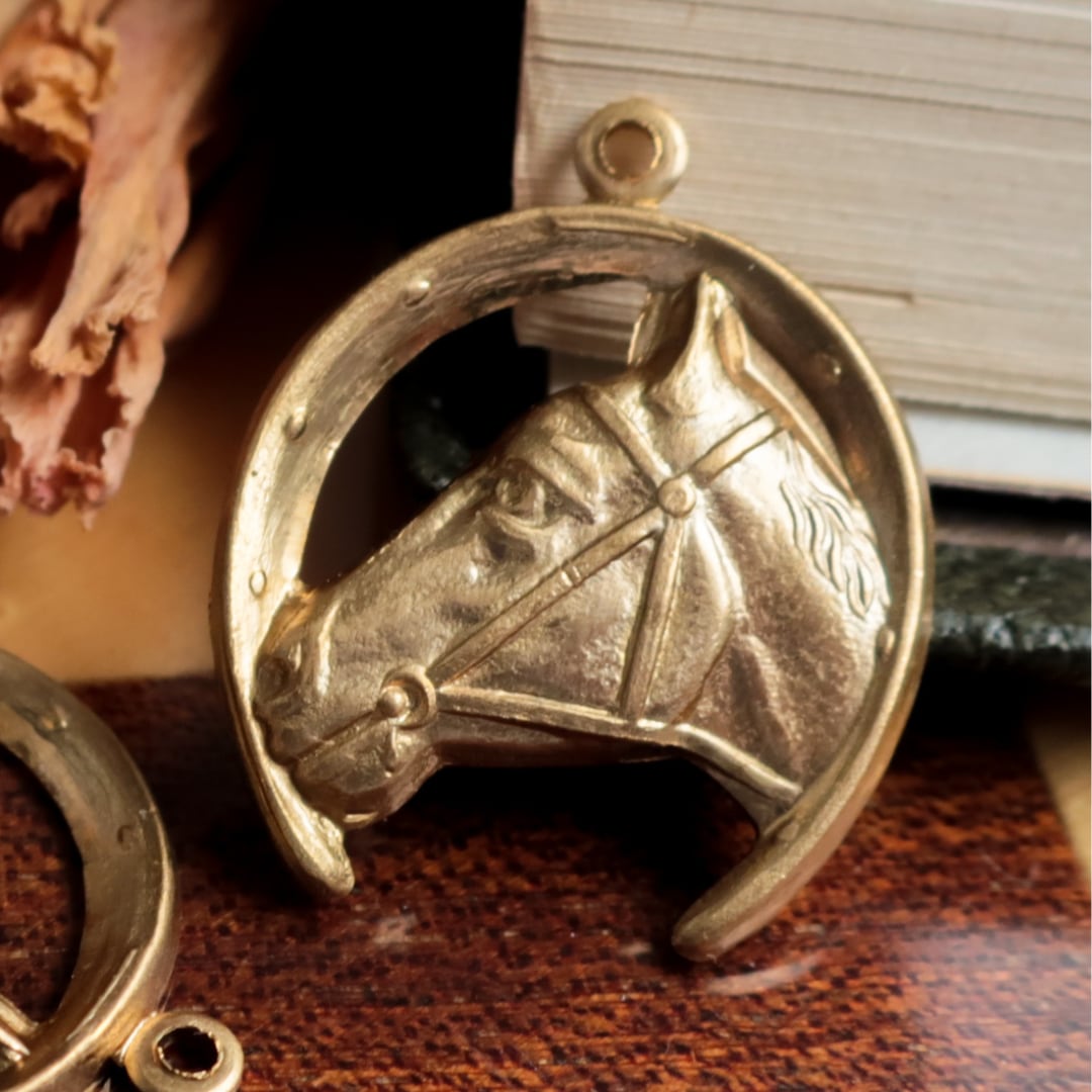 真鍮 パーツ 馬 2個 A1173 |動物 アクセサリーパーツ 個性的 アメリカ製 bomul ボムル