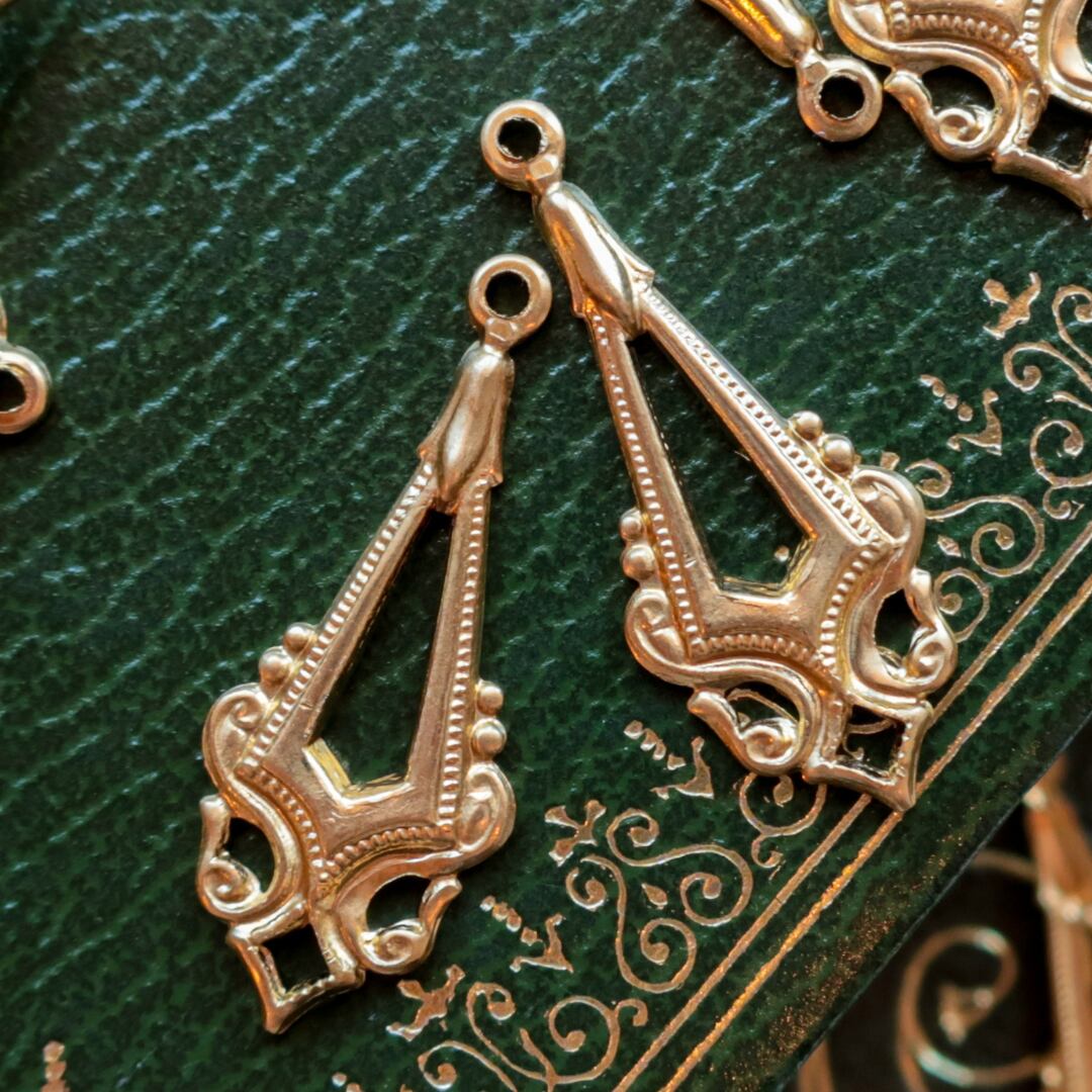 真鍮 パーツ チャーム 2個 A1842 | アクセサリパーツ ゴールド アンティーク調 クラシカル アメリカ製 bomul ボムル