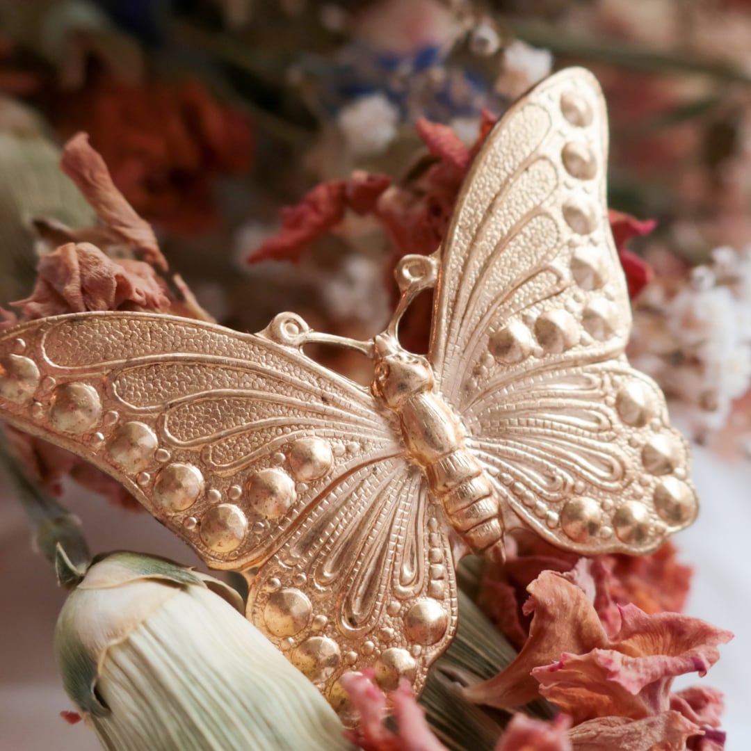 真鍮 パーツ 蝶 2個 A2102 | バタフライ アクセサリパーツ アンティーク調 アメリカ製 bomul ボムル