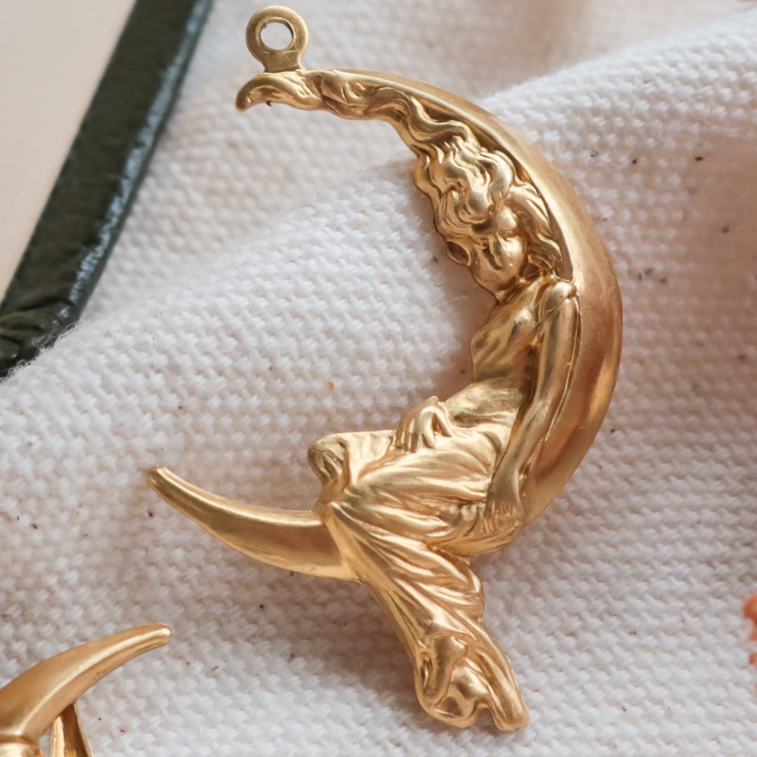 真鍮 パーツ 月 チャーム Lsize 2個 A1333 | アクセサリーパーツ アンティーク調 女性 アメリカ製 bomul ボムル