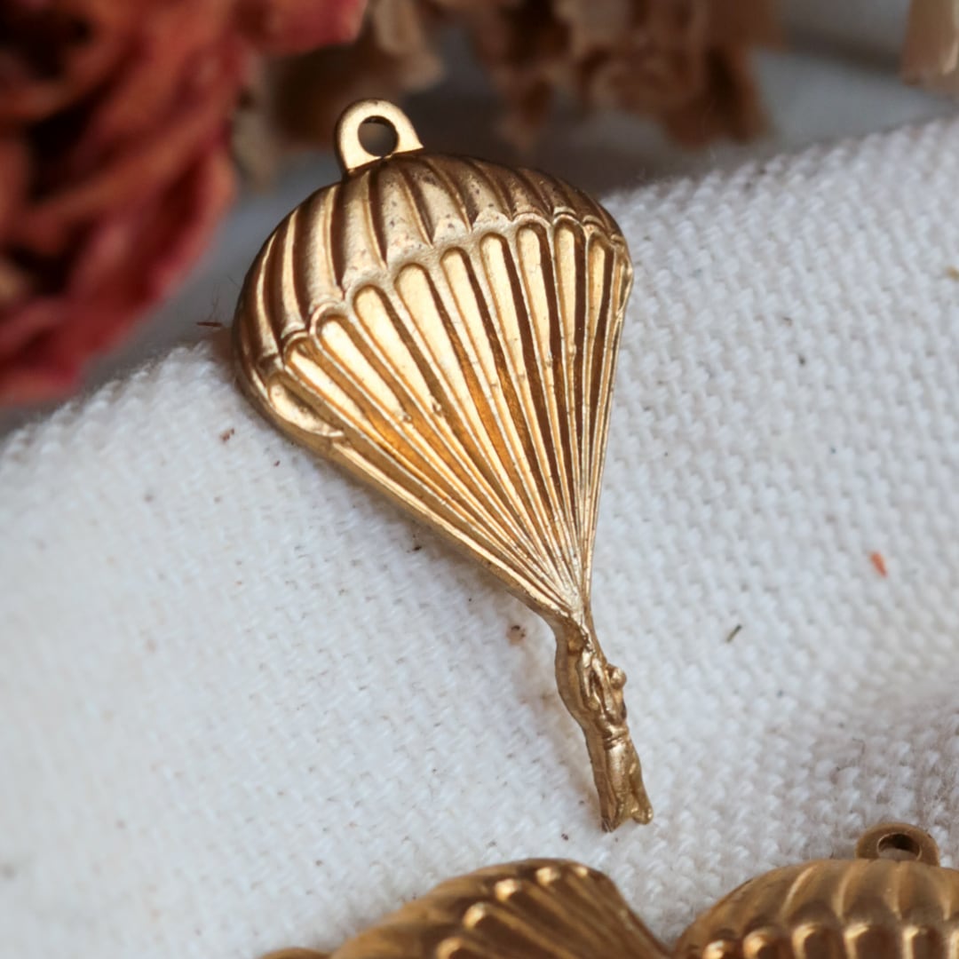 真鍮 パーツ パラシュート チャーム 2個 A1955 | 個性的 ゴールド アクセサリーパーツ アンティーク調 アメリカ製 bomul ボムル