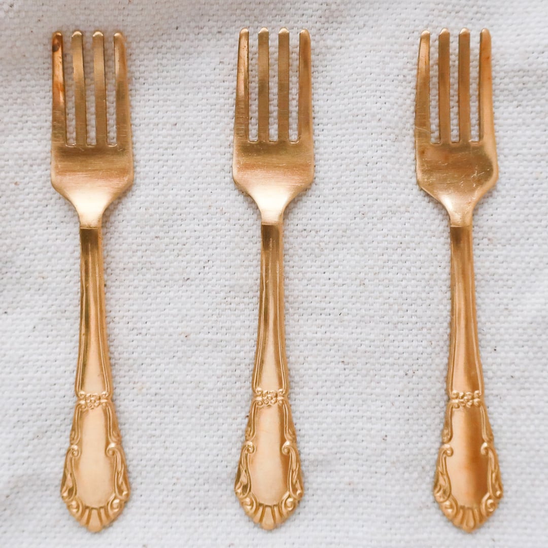 真鍮 パーツ フォーク 2個 A1402 | カトラリー ミニチュア アクセサリーパーツ ゴールド クラシカル アメリカ製 bomul ボムル