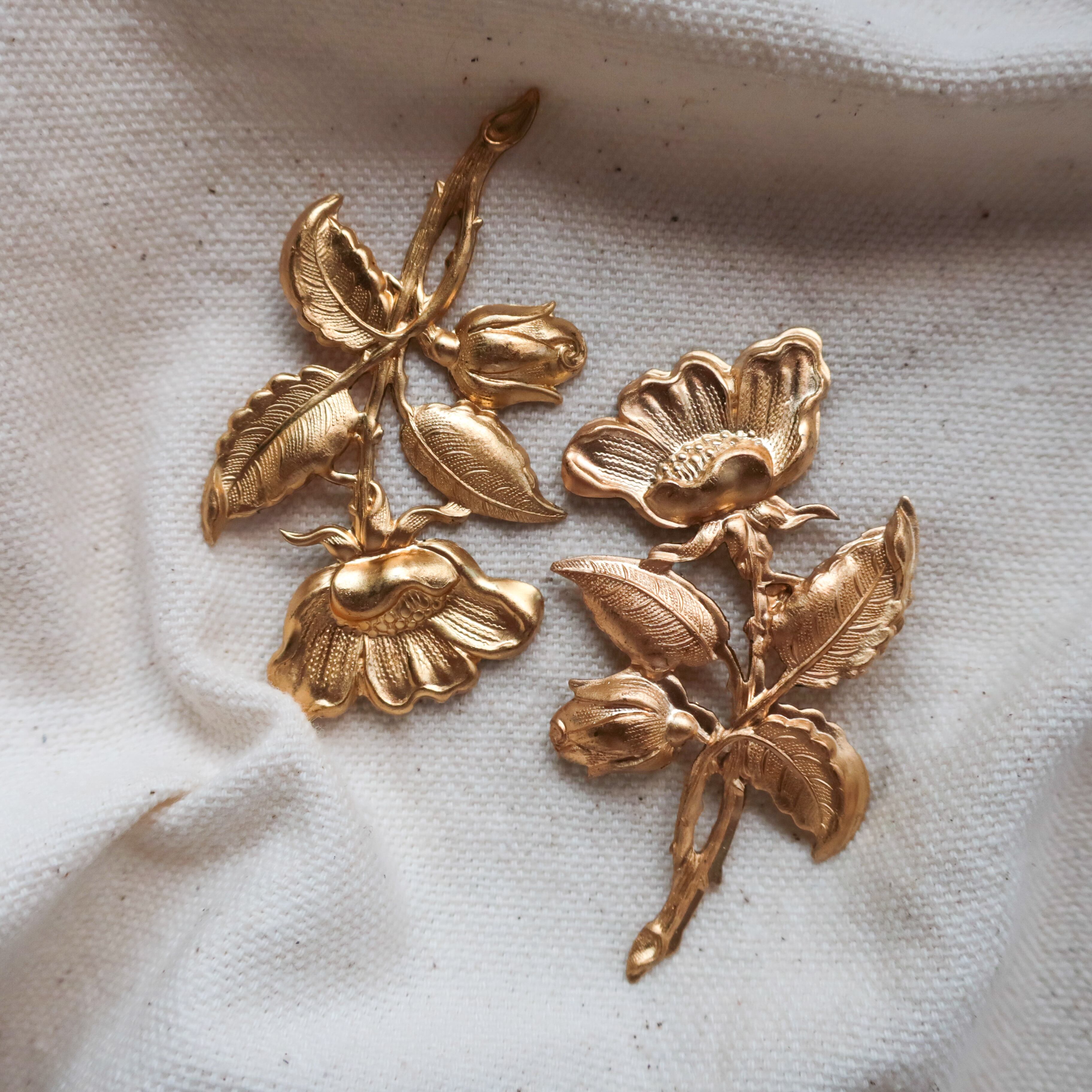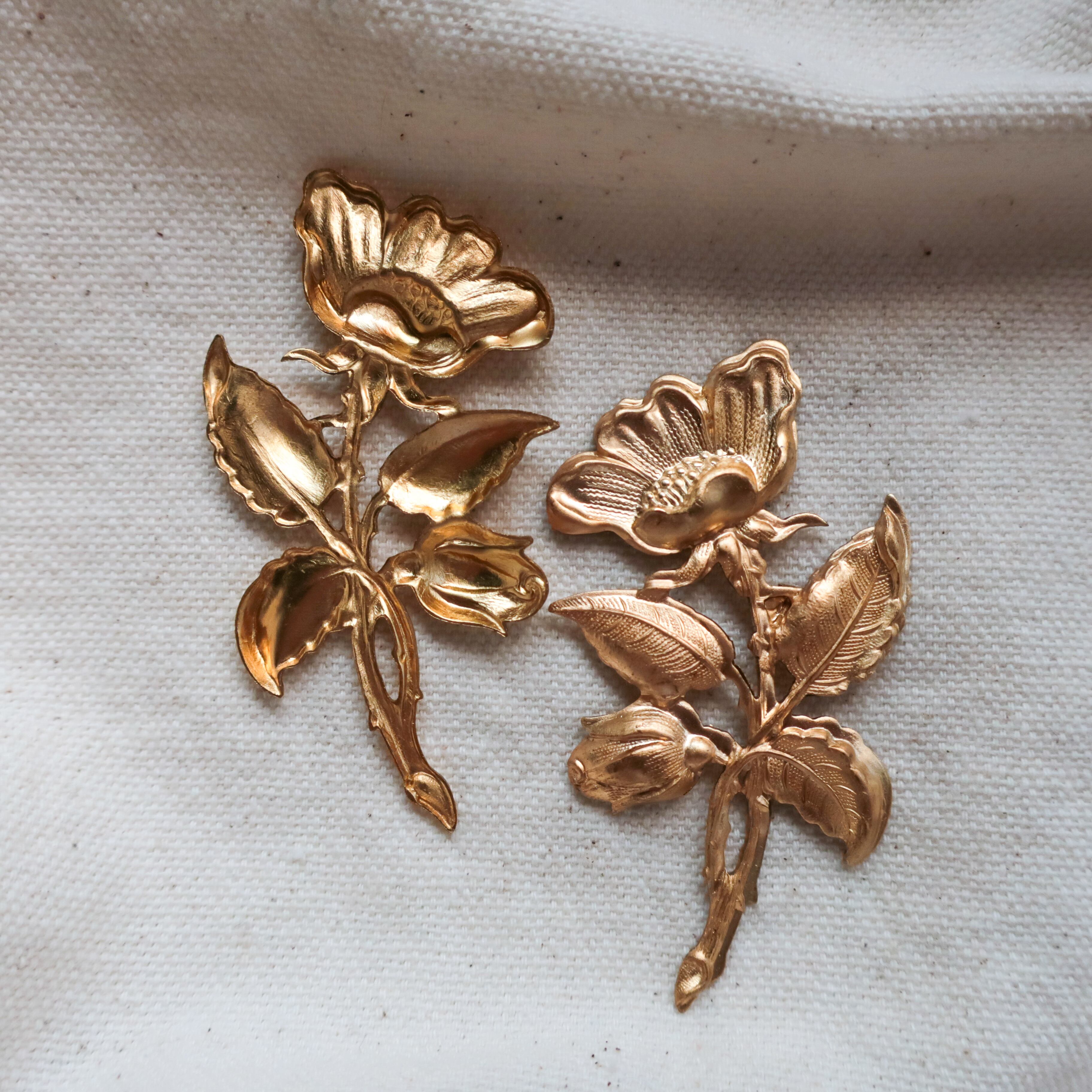 ハンドメイド アクセサリーパーツ 1個 A1453 花 フラワー 植物 アンティーク調 アメリカ製真鍮パーツショップ bomul ボムル
