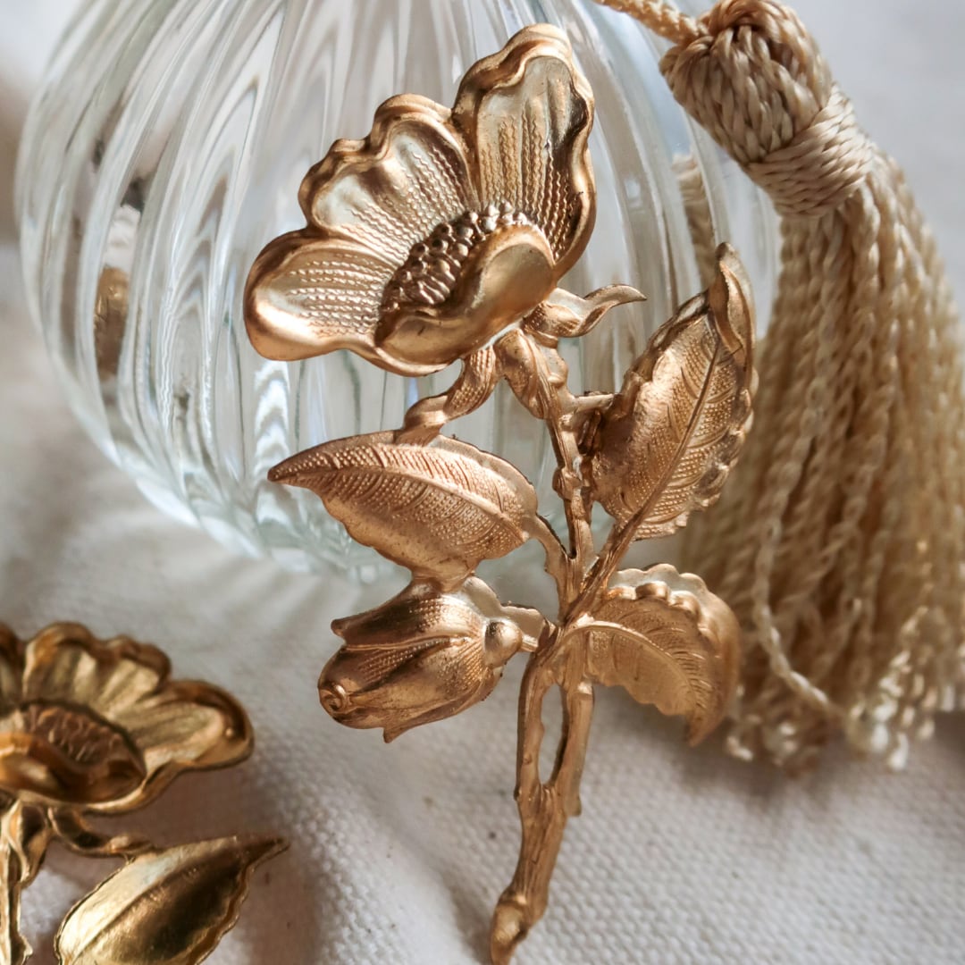 真鍮 パーツ 花 1個 A1453 | フラワー 植物 アクセサリーパーツ アンティーク調 アメリカ製 bomul ボムル