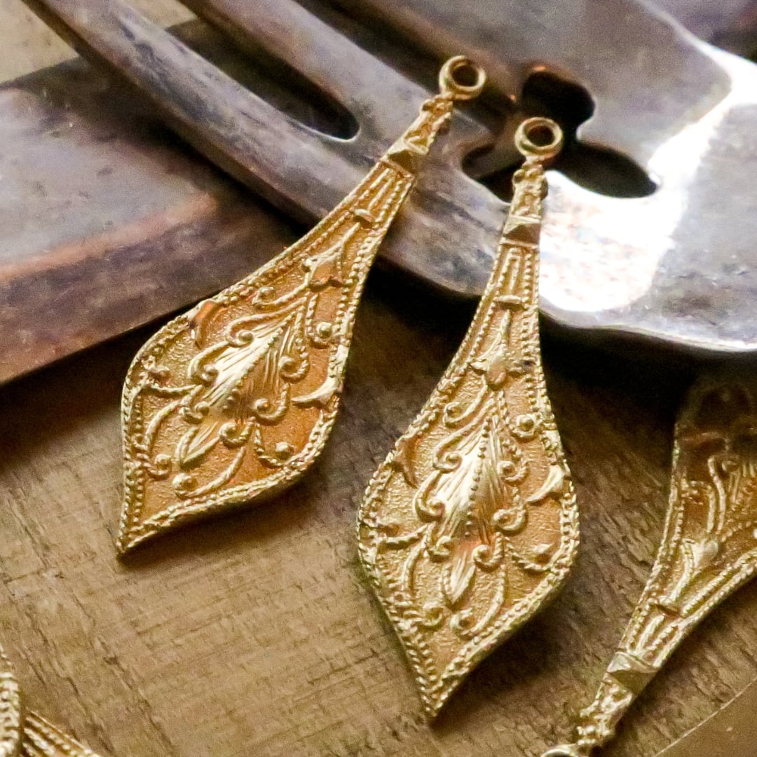 真鍮 パーツ クラシカル チャーム 2個 A461 | アクセサリーパーツ ゴールド 雫 ドロップ アンティーク調 アメリカ製 bomul ボムル