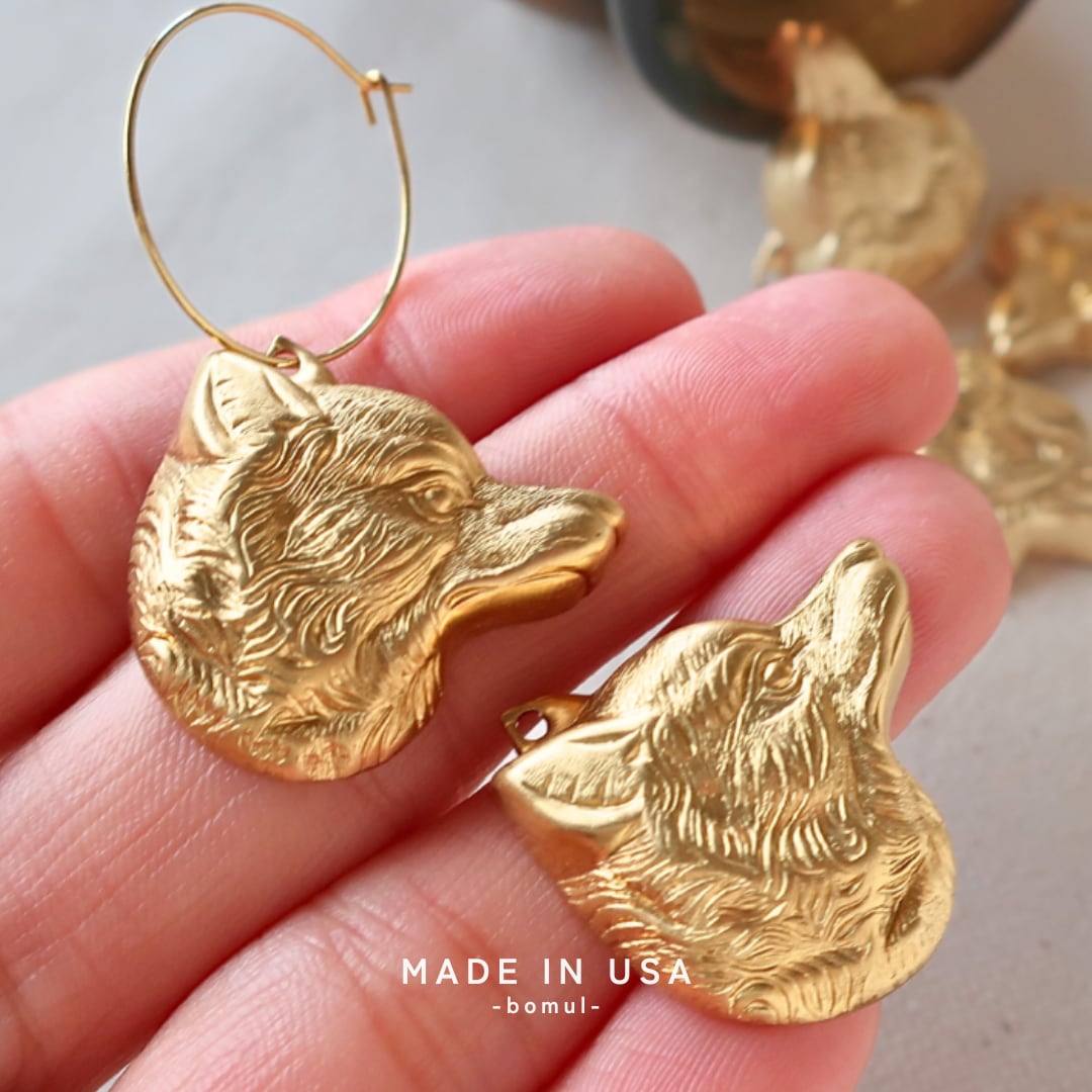 真鍮 パーツ 狼 チャーム 2個 A681 |当店オリジナル仕様| 動物 アニマル ハンドメイド アクセサリーパーツ ゴールド アンティーク調 アメリカ製 bomul ボムル