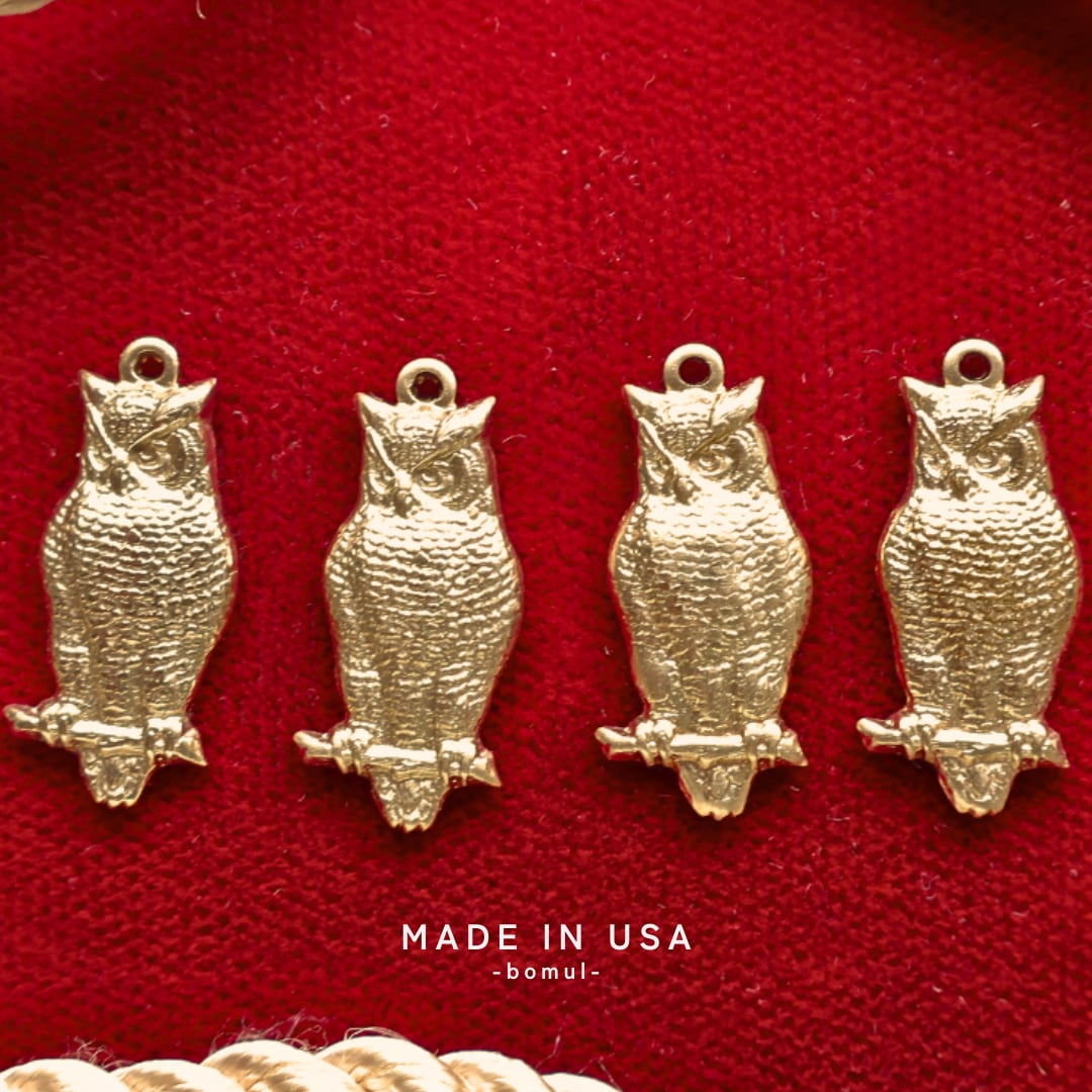 真鍮 パーツ ふくろう チャーム 4個 A1615 | 鳥 フクロウ アクセサリーパーツ アクセサリーパーツ 動物 アメリカ製 bomul ボムル