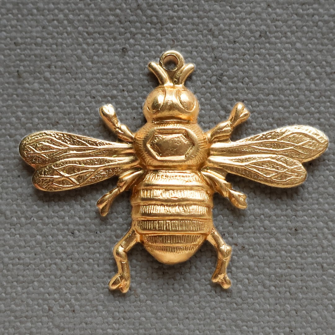 真鍮 パーツ 蜂 チャーム 2個 A101 | 虫 アクセサリーパーツ アンティーク調 アメリカ製 bomul ボムル