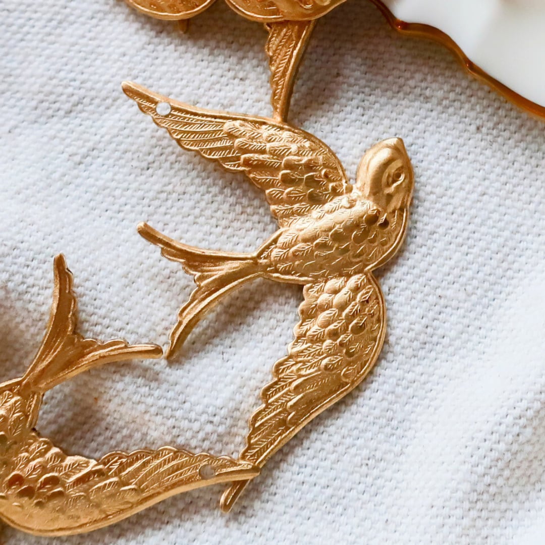 真鍮 パーツ 鳥 チャーム 2個 A1232 | 動物 アクセサリーパーツ アンティーク調 アメリカ製 bomul ボムル