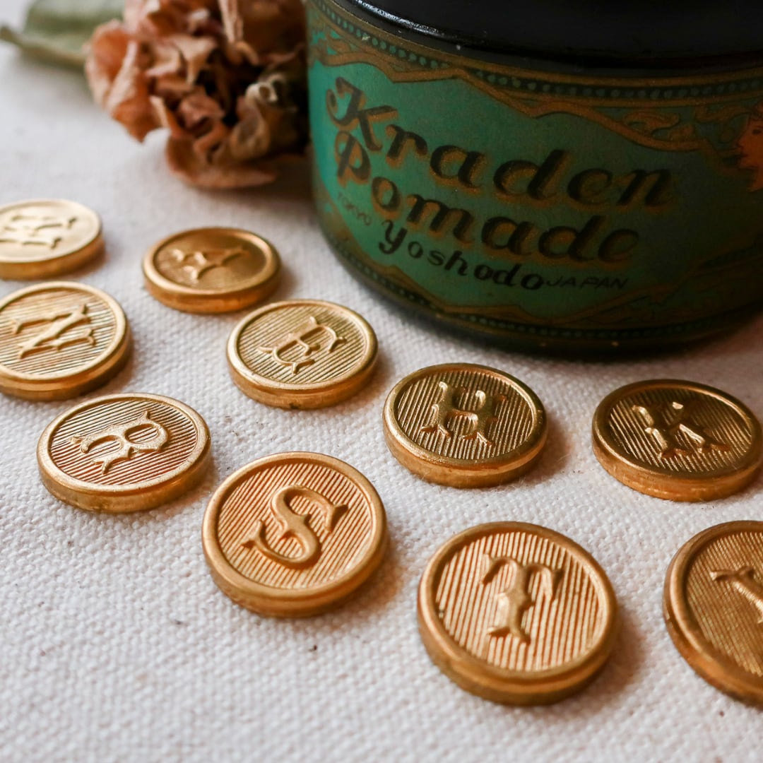真鍮 パーツ イニシャル 1セット(1種類2個) A1222 | カボション アクセサリーパーツ ゴールド アンティーク調 アメリカ製 bomul ボムル
