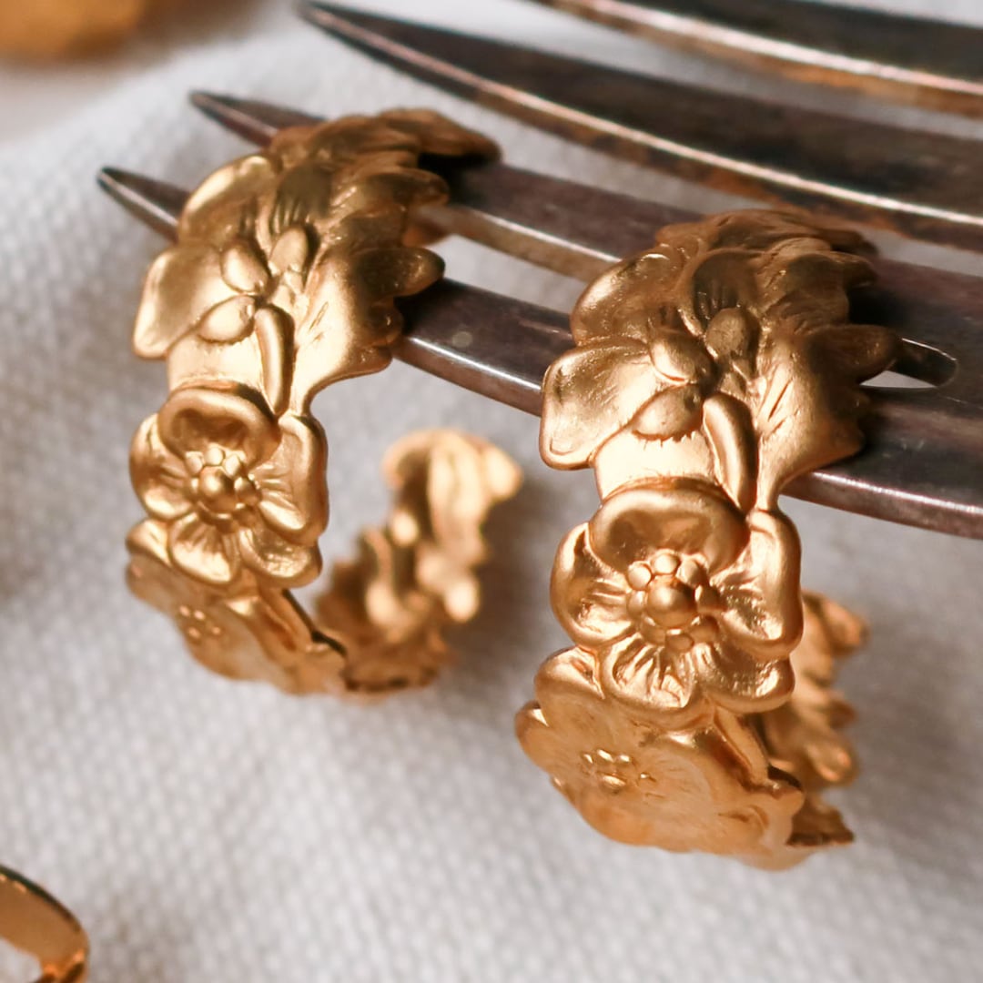 真鍮 フープ パーツ 花 2個 A891 | フラワー ボタニカル アクセサリーパーツ アンティーク調 アメリカ製 bomul ボムル