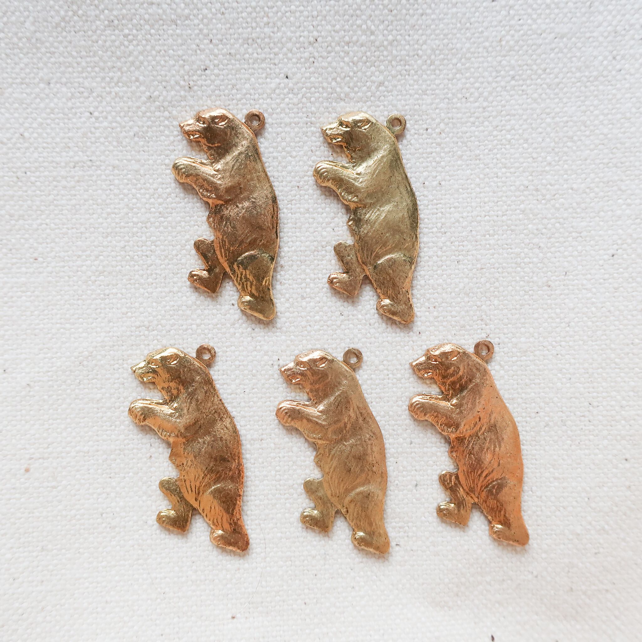 ハンドメイド アクセサリーパーツ チャーム 2個 A2385 くま 熊 動物 アニマル ゴールド アンティーク調 アメリカ製真鍮パーツショップ bomul ボムル