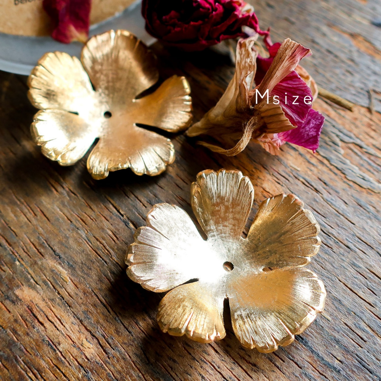 真鍮 パーツ 花 Msize 2個 A2302 | フラワー アクセサリーパーツ アンティーク調 アメリカ製 bomul ボムル