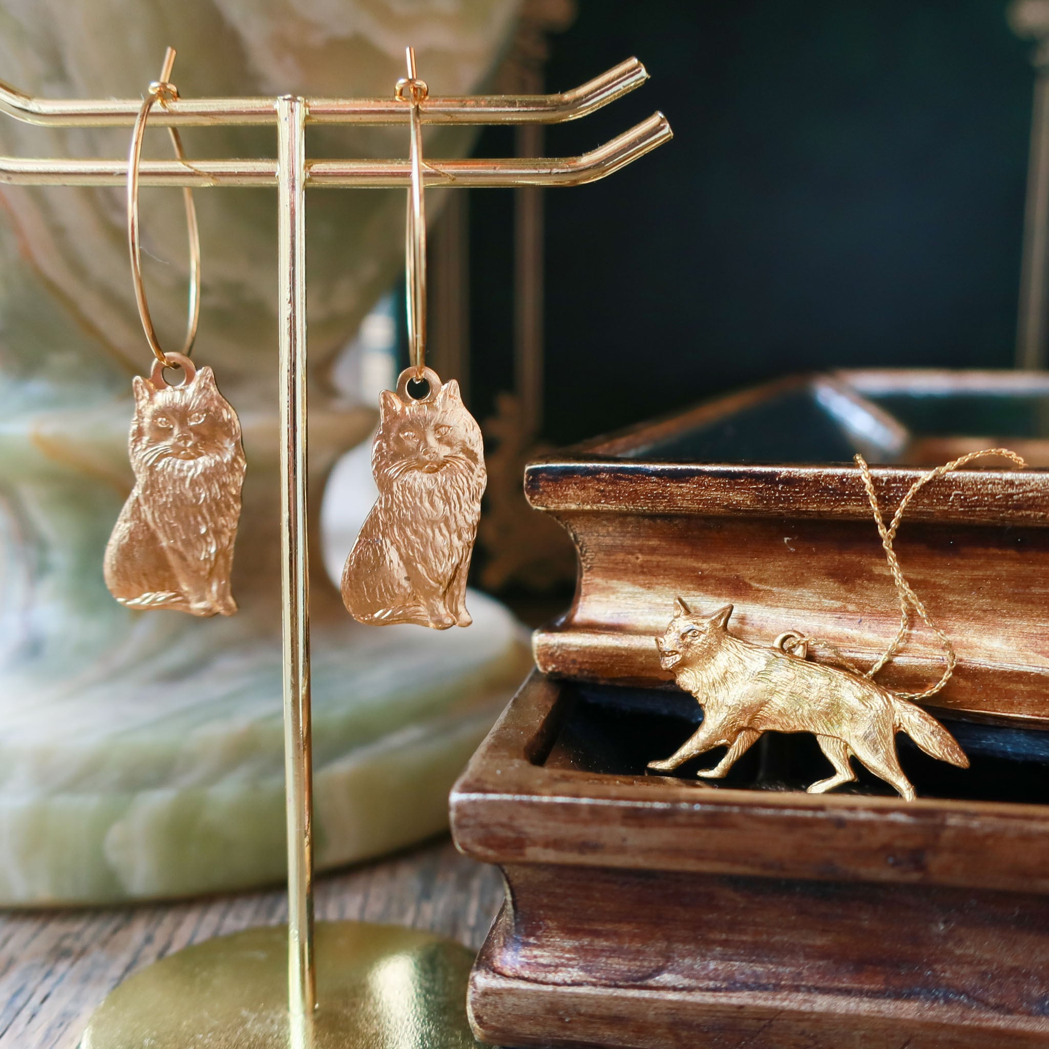 ピアスやイヤリングのチャームとして使うと、猫が小さく揺れ動いて愛らしい印象に。