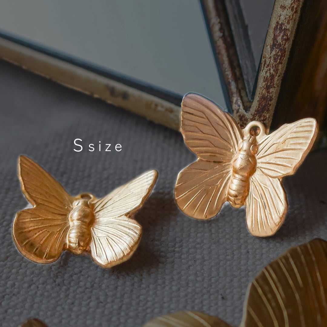 真鍮 パーツ 蝶 チャーム Ssize 4個 A2455 | バタフライ アンティーク調 アクセサリーパーツ アメリカ製 bomul ボムル