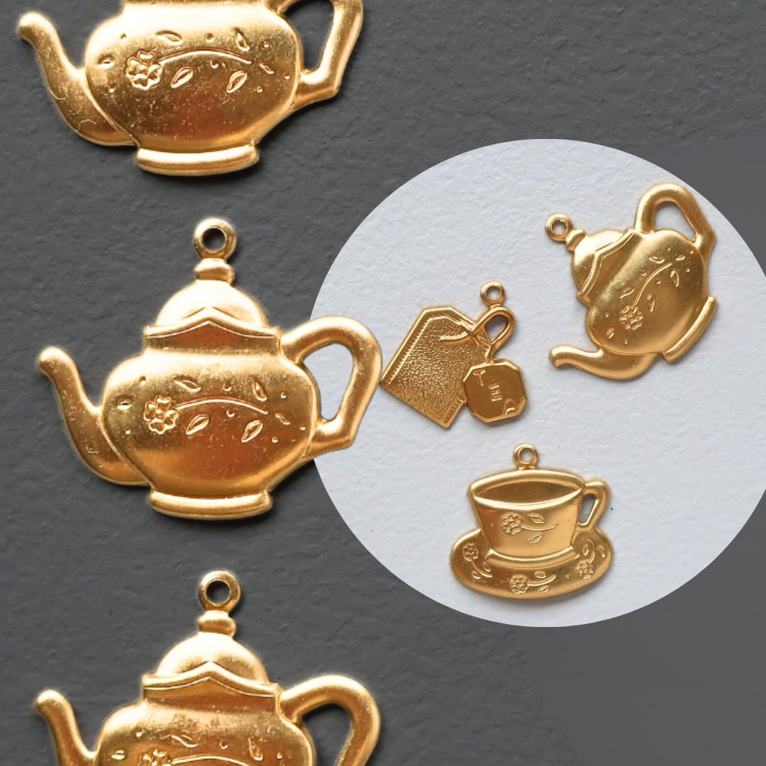 真鍮 パーツ ティーポット チャーム 6個 A771 | 食器 お茶会 飲み物 アクセサリーパーツ ゴールド アンティーク調 アメリカ製 bomul ボムル
