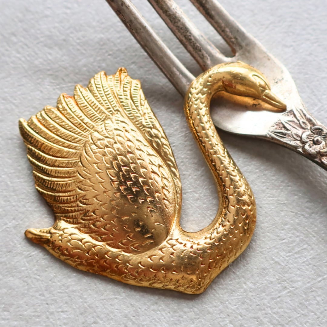 真鍮 パーツ 白鳥 2個 A2365 | 動物 アクセサリーパーツ アンティーク調 アメリカ製 bomul ボムル