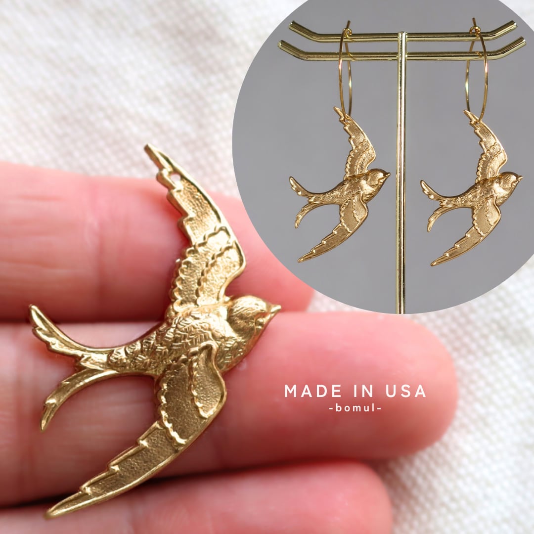 真鍮 パーツ 鳥 チャーム 2個 A2222 | 当店オリジナル仕様 | 動物 アンティーク調 アクセサリーパーツ アメリカ製 bomul ボムル