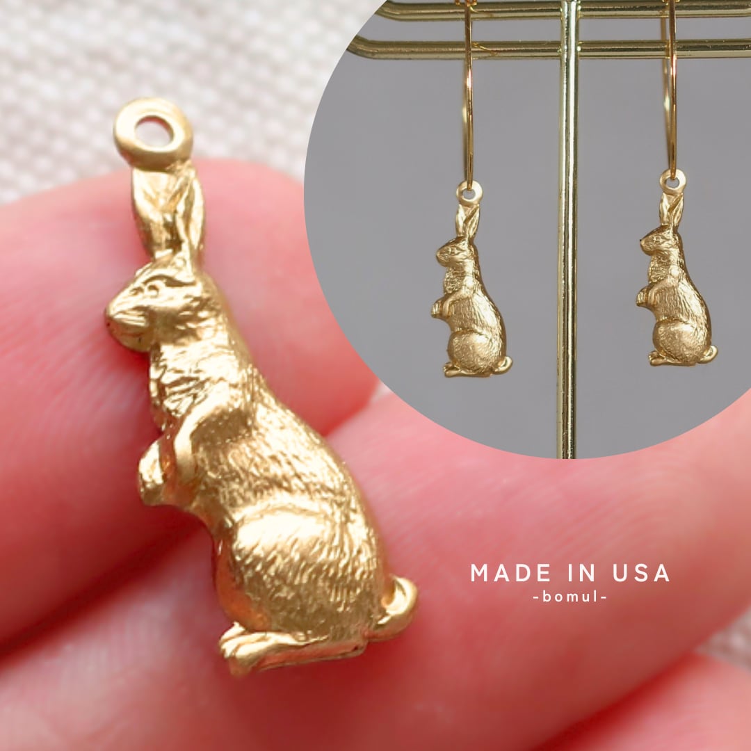 真鍮 パーツ うさぎ チャーム 4個 A2393 | 動物 アクセサリーパーツ ゴールド アメリカ製 bomul ボムル