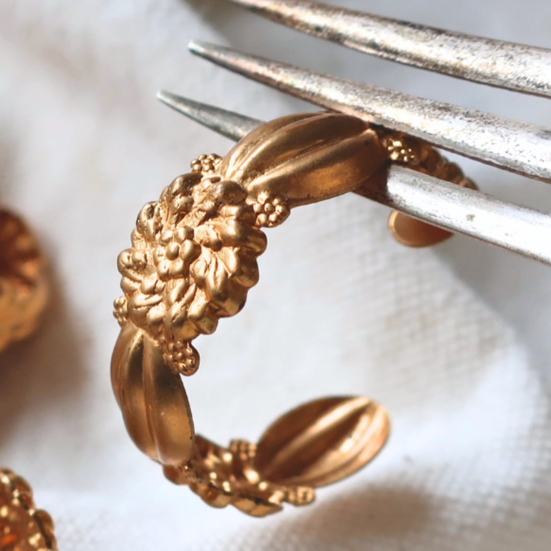 真鍮 フープ パーツ 花 2個 A821 | フラワー アクセサリーパーツ アンティーク調 アメリカ製 bomul ボムル