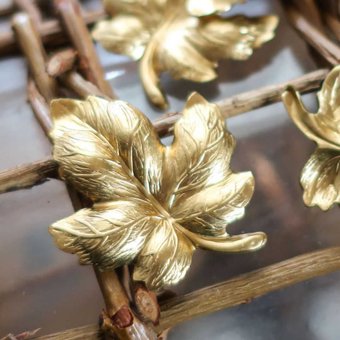 真鍮 パーツ 葉 2個 A2772 | アクセサリーパーツ 植物 カエデ ゴールド アンティーク調 アメリカ製 bomul ボムル